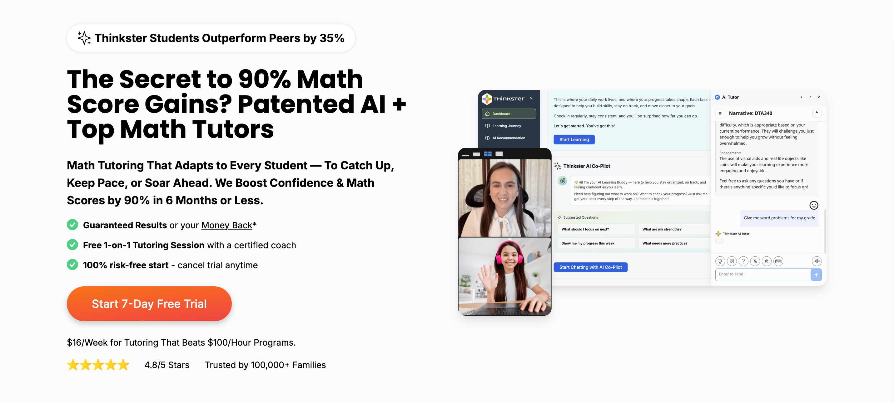 Thinkster subscriptions include full access to the digital learning platform, personalized AI-driven math worksheets, step-by-step solution videos, coach support, and a range of engaging features that keep students motivated. Since everything is online, your child can learn from home or anywhere with an internet connection, making it easy to stay consistent.