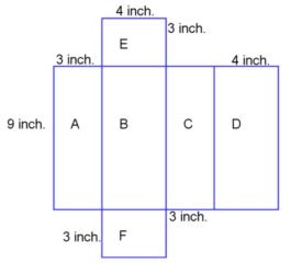 When finding the surface area, you are finding the area of each of the 6 rectangular faces on the prism. You can use a net, which is a 2 dimensional model of the prism. This is an example of a rectangular prism and its net: