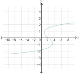 A graph is not a function, if the vertical line passes through the graph more than once. In the example below, the vertical line is drawn at x = -1. It passes through the graph at the points (-1,4) and (-1,-4). This shows that there are two outputs, y, for the input, x.