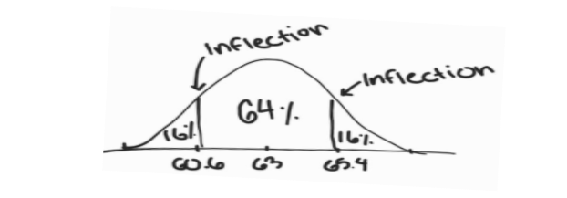- X ~ N(μ, σ): The variable, X, follows the normal distribution, N, has the mean, μ, with a center deviation, σ.