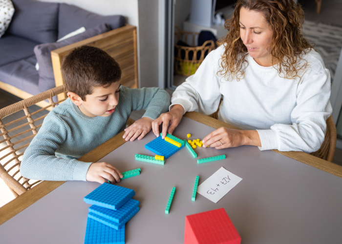 Provide physical manipulatives, such as counters or blocks, to help your child visualize addition, subtraction, multiplication, and division.