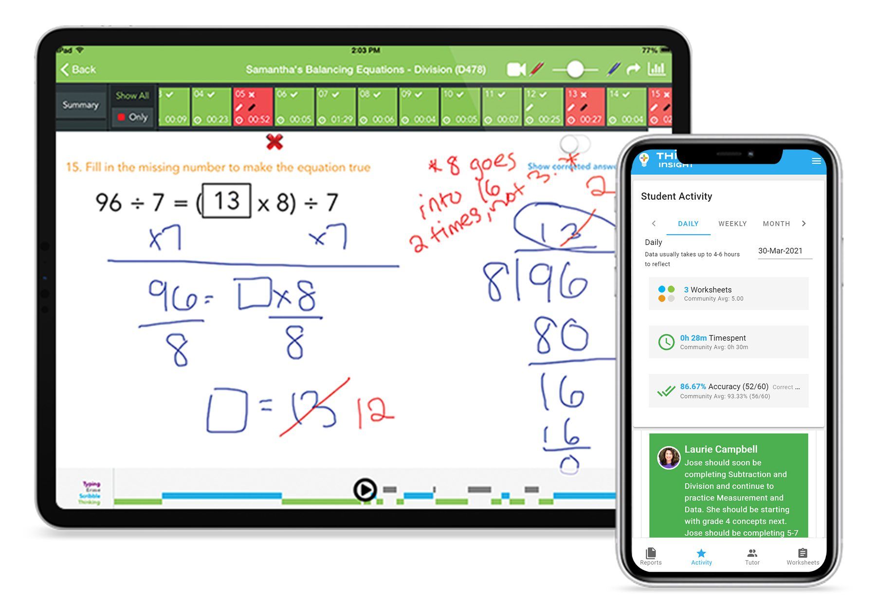 The math tutor checks your child’s assignments, understands how they answer questions and utilizing strategies, then provides corrections and feedback for every incorrect question. This feedback outlines specific problem solving steps for your child to review and learn from.