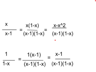 Now find the new fractions with the common denominator (x-1)(1-x)