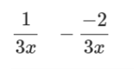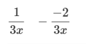 To subtract these, subtract -2 from 1. 1-(-2) =3. Then keep the denominator 3x.This gives you an answer of 3/3x. When simplified, the difference will be 1/x.