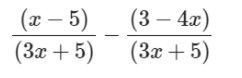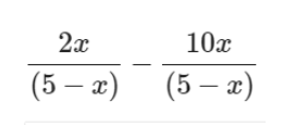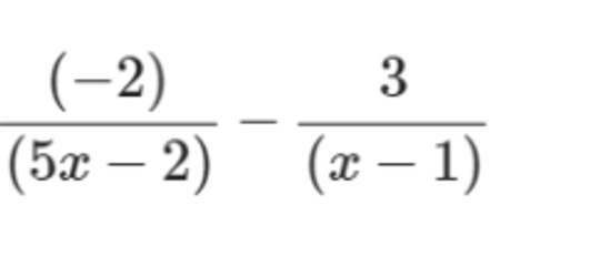 When subtracting rational expressions with unlike denominators, first find a common denominator. In the example below, the common denominator will be (5x-2)(x-1).