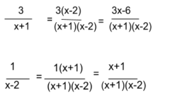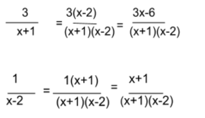 Now find the new fractions with the common denominator (x+1)(x-2).