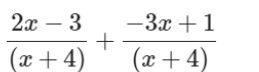 To add these, add the numerators 2 and -5 to get a sum of -3. Then keep the denominator x. This gives you an answer of