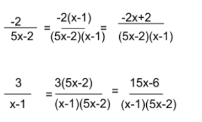 Now find the new fractions with the common denominator (5x-2)(x-1).