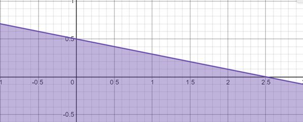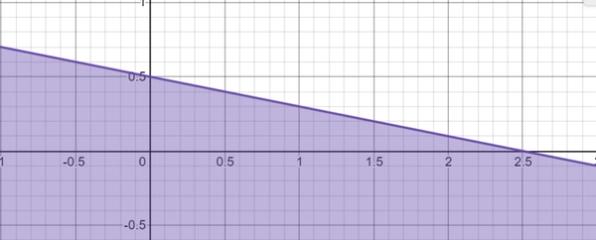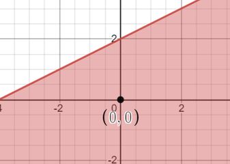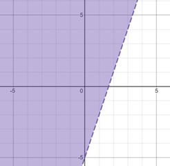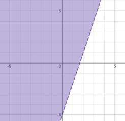 First we find the boundary line. The line crosses the y-axis at y=-5, so there is one point (0,-5). This means b=-5. The boundary line also goes through the point (2,1) so now we can find the equation of that line.