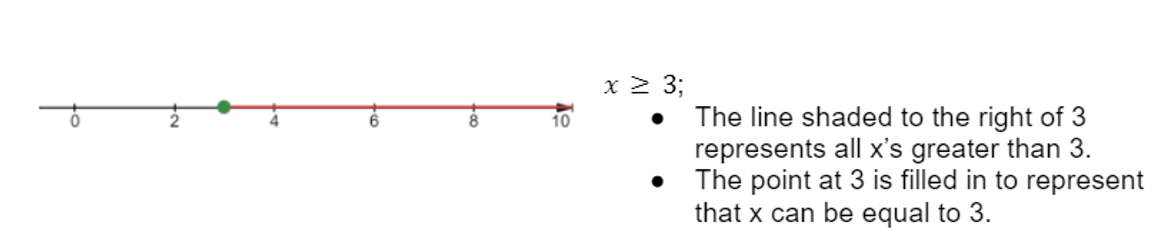 When graphing an inequality on a number line, there are certain rules to keep each specific inequality distinct. We use shading and open/closed circles to denote direction and inclusion within the solution set.