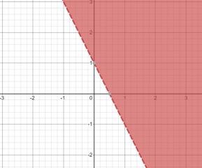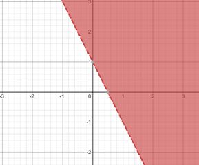 It is a strict inequality, thus the boundary line y=-2x+1 is dashed, and not solid. Since the inequality is greater than the boundary line, the points to the right/ above the boundary are shaded.