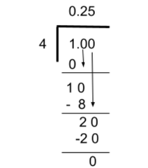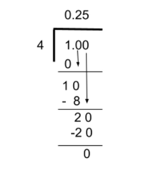 41×2525=10025 Since 100 has two zeros, the decimal point will jump two to the left making the decimal 0.25.
