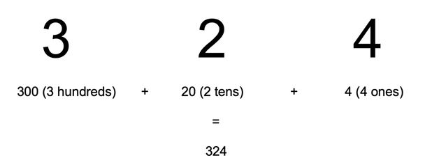 You can use the concept of expanded form of a number to break down any number (any number that has an end to it!). Here’s a simple example showing the expanded form (or in other words a break-down) of the number 324: