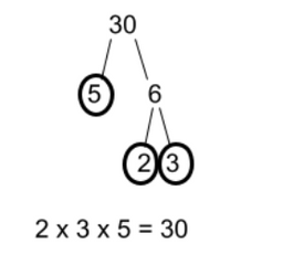 4. The number 30 is written as a product of its prime factors. What is the correct way of writing it?