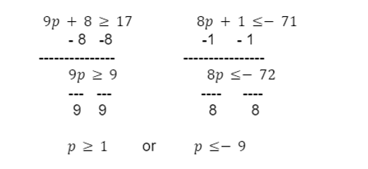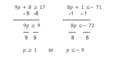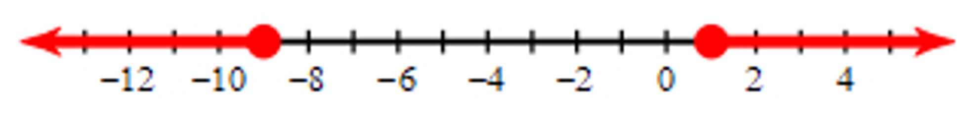 After we have solved this, we can then graph the solutions for numbers less than or equal to -9 and greater than or equal to 1 as shown below.