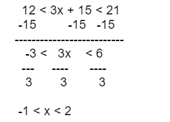 2. Solve the compound inequality 12 < 3x + 15 < 21 and graph the solution.
