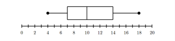 Assume that the following number line represents the number of tomatoes in John’s basket at each weight in ounces. The box plot suggests that about 75% of tomatoes were less than how many ounces?