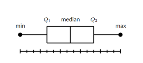 A box and whisker plot is a representation of a set of data that shows a 5-number summary of the data. The five numbers used are minimum, maximum, first quartile, median, and third quartile. The box is from the first quartile to the third quartile. There is a vertical line drawn between the first and third quartile where the median is. The whiskers go to the minimum and maximum.