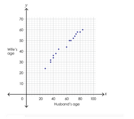 The scatterplot above shows a positive correlation. As the age increases, so does the value. The x and y variables are both increasing. We cannot say this is causation, because there is no evidence that the increase in age is affecting the value. It could just be a coincidence.