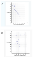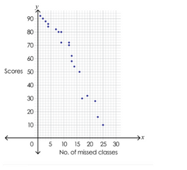 1) The scatter plot shows the scores high school students received in a chemistry class and the number of days of Chemistry class they missed. What type of correlation is shown?