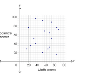 2.) Students were asked for their test scores on all the math and science tests they took during the school year. What does the data in the scatter plot show?