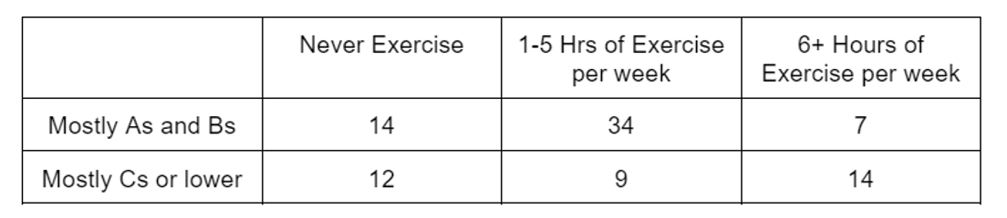 Solution: The way we calculate probability has not changed - it will still be the number of desired outcomes out of total possible outcomes. However, we need to consider carefully what those are in this situation. For the number of desired outcomes, note that I want the probability of a person having a dream given that they ate a late night snack. In other words, I want the people who had both - a late night snack and a dream. That would be the top left box of the chart. So our number of desired outcomes is 31 - thirty-one people had a dream and a late night snack. Now for the total number of possible outcomes. I want the probability of having a dream given that they ate a late night snack. In other words, I’m not interested in anyone who didn’t eat a late night snack. So I will disregard the entire right column and instead add up the two numbers in the left column. 31 + 19 = 50. So 50 people ate a late night snack - this is the pool of people that I’m picking out of for this probability. So the probability is