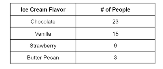 3. Breslin has 50 classmates in the 4th grade and he surveyed them about their favorite ice cream flavor. The following table summarizes his results: