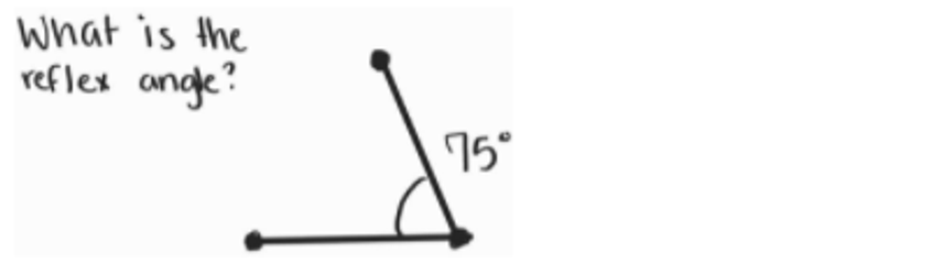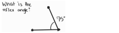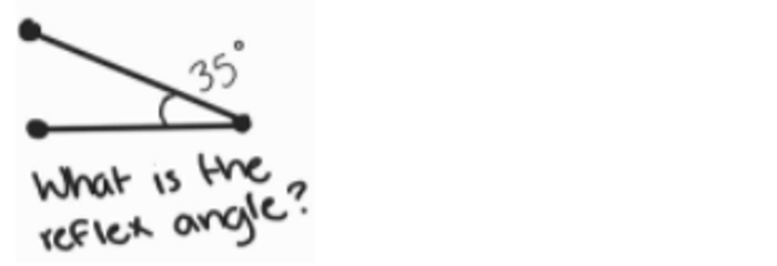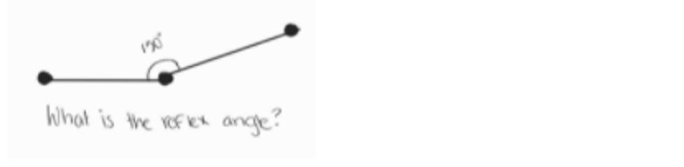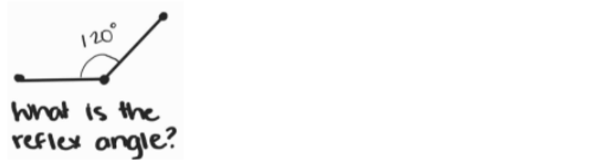 You use a protractor to calculate the reflex angle. Although sometimes that won’t be an option and you will be given the measure of the inner angle. From there you can subtract that amount from 360, as a full rotation is 360 degrees.