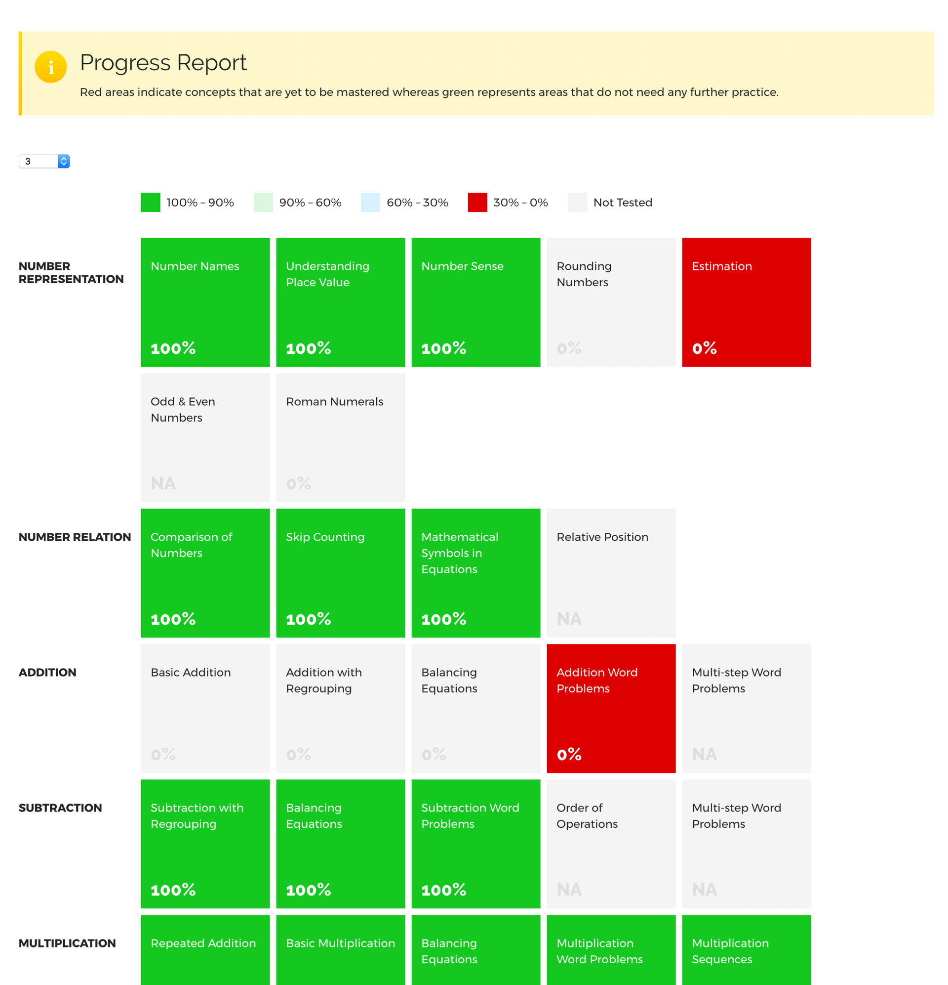 Imagine being able to understand what your child needs to succeed, be it compete in the math Olympiad or get help with school work. This is what we do, by quickly creating a baseline. We start with a simple Skills Assessment of your child to identify their strengths and weaknesses.
